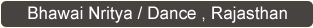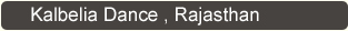 Also known as the Sapera(snake) song, this is one of the most serious dance from of Rajasthan , performed by the Kalbeliyas snake charmers ribbons As they spin in a circle, their bodies sway acrobatically, so that it is impossible to belive that they are made of anything other than rubber. As the beat increases in tempo,the pace increases to such a pitch , that it leaves the viewer as exhausted as the dancer. The musical instruments used for the dance are been, Dufli,Bafang(a one wire instrument) and the large dhol (drum)..